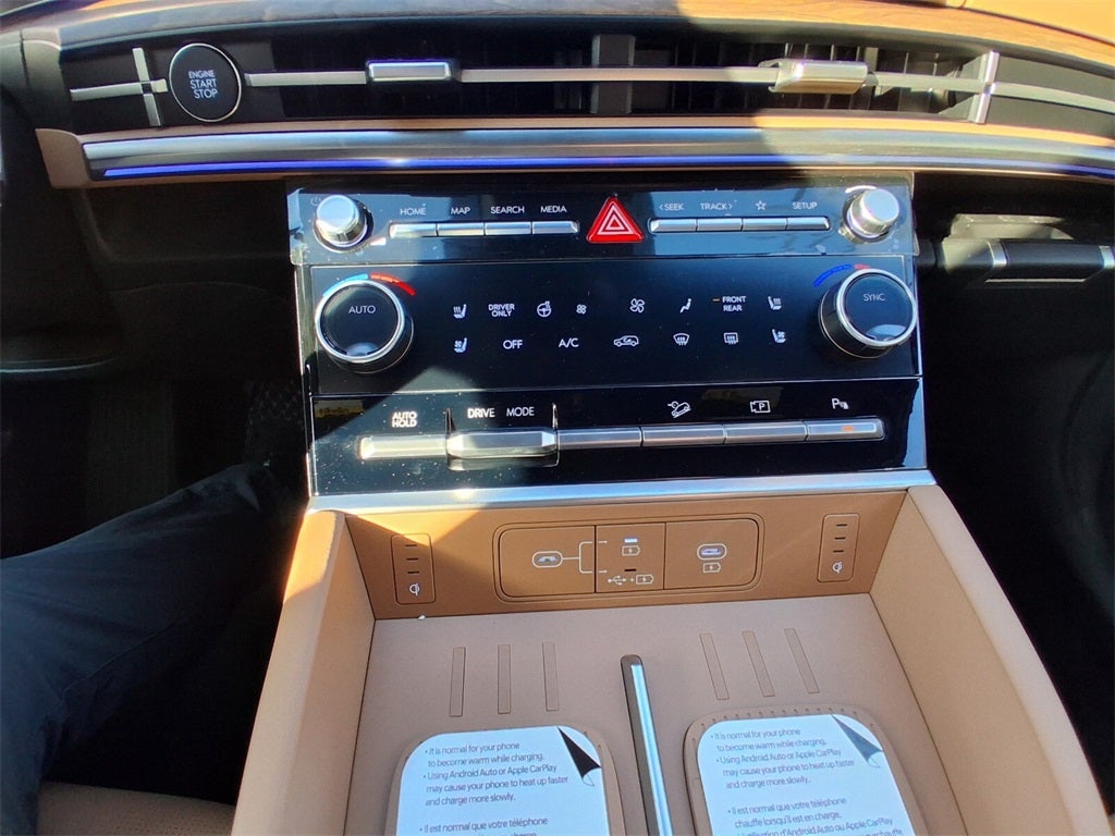 - Radio: AM/FM/HD Bose Premium Audio System -inc: 12 speakers including subwoofer, external amplifier, 12.3" wide touchscreen, wireless Apple CarPlay and Android Auto, Bluetooth® hands-free w/wireless audio streaming, dynamic voice recognition, USB connectivity, SiriusXM, wifi hotspot, Blue Link connected car system, navigation system including traffic flow w/incident data via HD Radio (HERE), OTA updates and rear seat quiet mode
