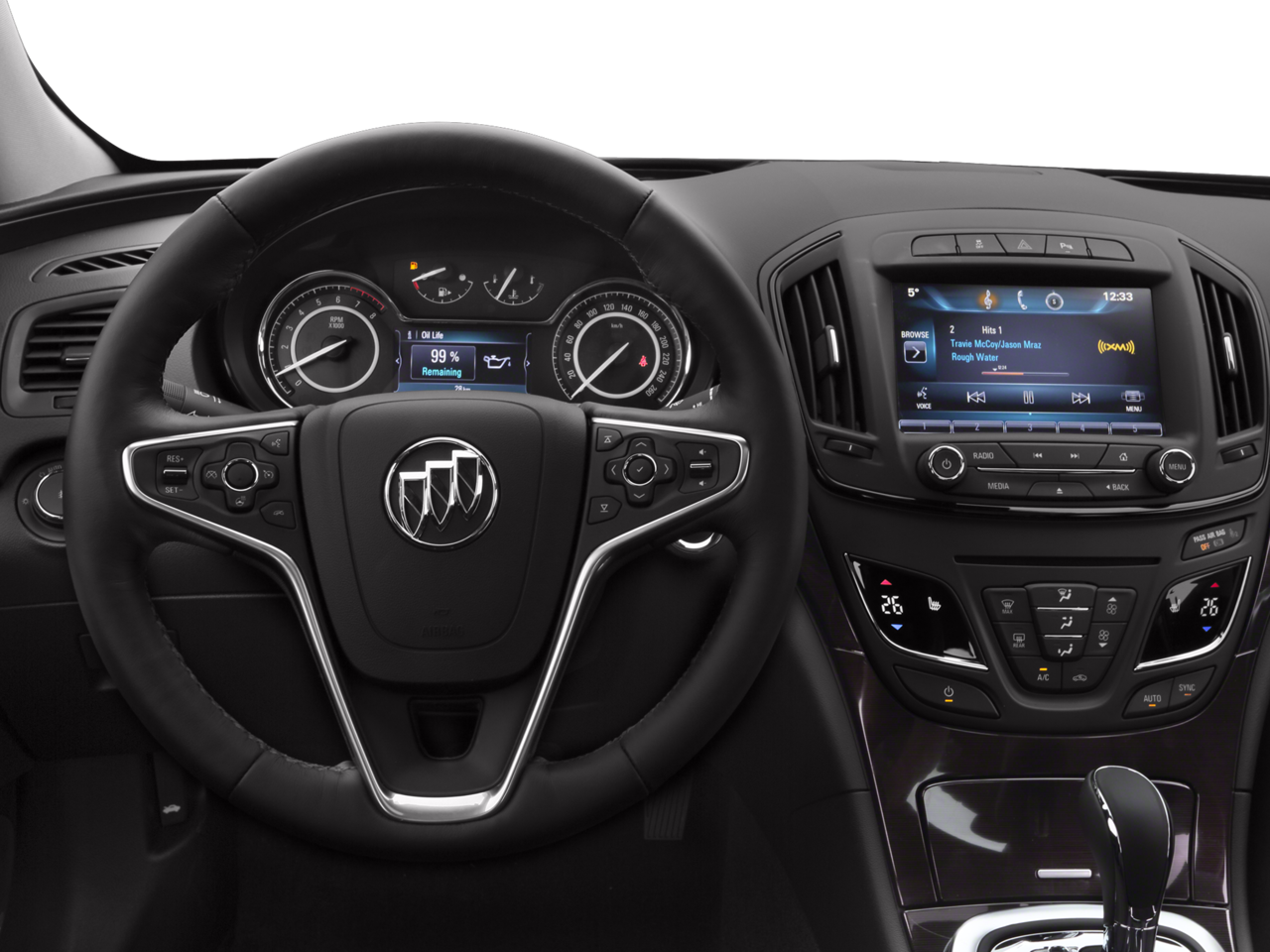 6-Speed Automatic, 2-Way Adjustable (Up/Down) Front Head Restraints, 2-Way Power Driver Lumbar Seat Adjuster, 4-Way Manual/2-Way Power Vertical Passenger Seat, 4-Wheel Disc Brakes, 7 Speakers, 7-Speaker Audio System Feature, 8-Way Power Driver Seat Adjuster, ABS brakes, Air Conditioning, Alloy wheels, AM/FM radio: SiriusXM, Apple CarPlay/Android Auto, Auto-dimming Rear-View mirror, Automatic temperature control, Brake assist, Bumpers: body-color, CD player, Compass, Delay-off headlights, Driver door bin, Driver vanity mirror, Dual front impact airbags, Dual front side impact airbags, Electronic Stability Control, Emergency communication system: OnStar Guidance, Exterior Parking Camera Rear, Four wheel independent suspension, Front anti-roll bar, Front Bucket Seats, Front Center Armrest, Front dual zone A/C, Front fog lights, Front License Plate Bracket, Front reading lights, Fully automatic headlights, Heated door mirrors, Heated Driver & Front Passenger Seats, Heated front seats, Illuminated entry, Leather-Appointed Seat Trim, Low tire pressure warning, Occupant sensing airbag, Outside temperature display, Overhead airbag, Overhead console, Panic alarm, Passenger door bin, Passenger vanity mirror, Power door mirrors, Power driver seat, Power passenger seat, Power steering, Power windows, Preferred Equipment Group 1SH, Premium audio system: IntelliLink, Radio data system, Radio: Buick IntelliLink AM/FM Stereo, Rear anti-roll bar, Rear reading lights, Rear seat center armrest, Rear window defroster, Remote keyless entry, Security system, Single-Slot CD/MP3 Player, SiriusXM Satellite Radio, Speed control, Split folding rear seat, Spoiler, Steering wheel mounted audio controls, Tachometer, Telescoping steering wheel, Tilt steering wheel, Traction control, Trip computer, Turn signal indicator mirrors, Variably intermittent wipers, Wheels: 18 Aluminum w/Black-Painted Pockets, 6-Speed Automatic.