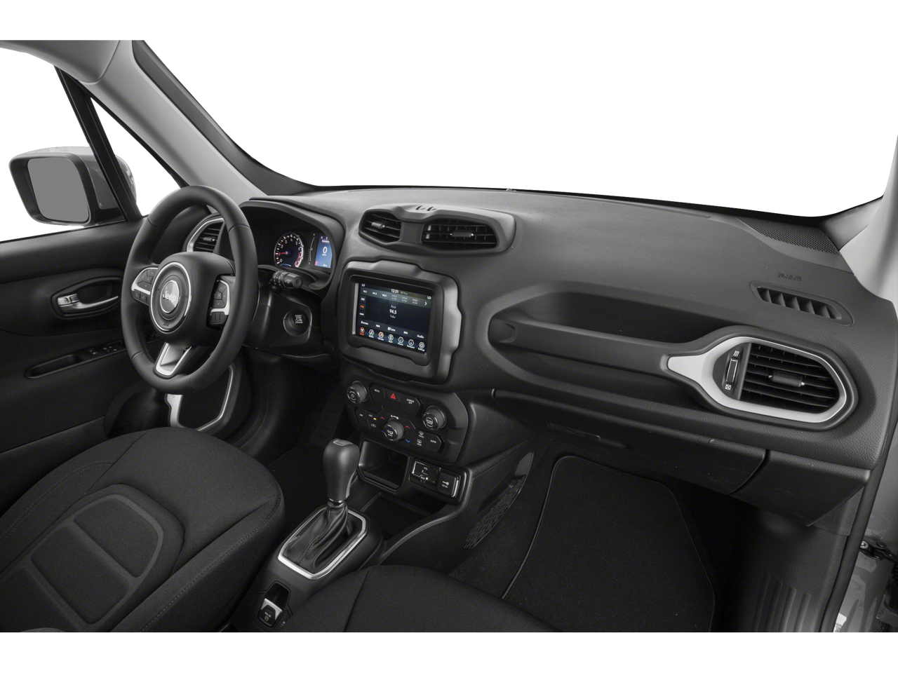 17 x 7.0 Aluminum Wheels, 3.734 Final Drive Ratio, 4-Wheel Disc Brakes, 6 Speakers, ABS brakes, Air Conditioning, Alloy wheels, Altitude Package, AM/FM radio: SiriusXM, Anti-whiplash front head restraints, Apple CarPlay/Android Auto, Automatic temperature control, Bi-Function LED Projector Headlamps, Black Accent Stitching, Brake assist, Compass, Connectivity (Bridge Solution) (DISC), Dedicated LED Daytime Running Lamps, Delay-off headlights, Deluxe Cloth High-Back Bucket Seats, Driver door bin, Driver vanity mirror, Dual front impact airbags, Dual front side impact airbags, Electronic Stability Control, Emergency communication system, Exterior Mirrors w/Supplemental Signals, Four wheel independent suspension, Front anti-roll bar, Front Bucket Seats, Front Center Armrest, Front dual zone A/C, Front fog lights, Front reading lights, Fully automatic headlights, Global Telematics Box Module (TBM) (DISC), Gloss Black Exterior Accents, Heated door mirrors, Illuminated entry, Kenwood Premium Audio System (DISC), Knee airbag, Leather Wrapped Steering Wheel, LED Cornering Fog Lamps, LED Lighting Group, LED Taillamps, Low tire pressure warning, Manual Adjust 4-Way Front Passenger Seat, Manufacturer's Statement of Origin, Normal Duty Suspension, Occupant sensing airbag, Outside temperature display, Overhead airbag, Panic alarm, ParkView Rear Back-Up Camera, Passenger door bin, Passenger vanity mirror, Power door mirrors, Power steering, Power windows, Premium Cloth Bucket Seats, Quick Order Package 22M Altitude, Radio data system, Radio: Uconnect 4 w/7 Display, Rear anti-roll bar, Rear window defroster, Rear window wiper, Remote keyless entry, Roof rack: rails only, Speed control, Split folding rear seat, Spoiler, Steering wheel mounted audio controls, Tachometer, Telescoping steering wheel, Tilt steering wheel, Traction control, Trip computer, Variably intermittent wipers, Vinyl Door Trim Panel, Voltmeter, Wheels: 17 x 7 Gloss Black.