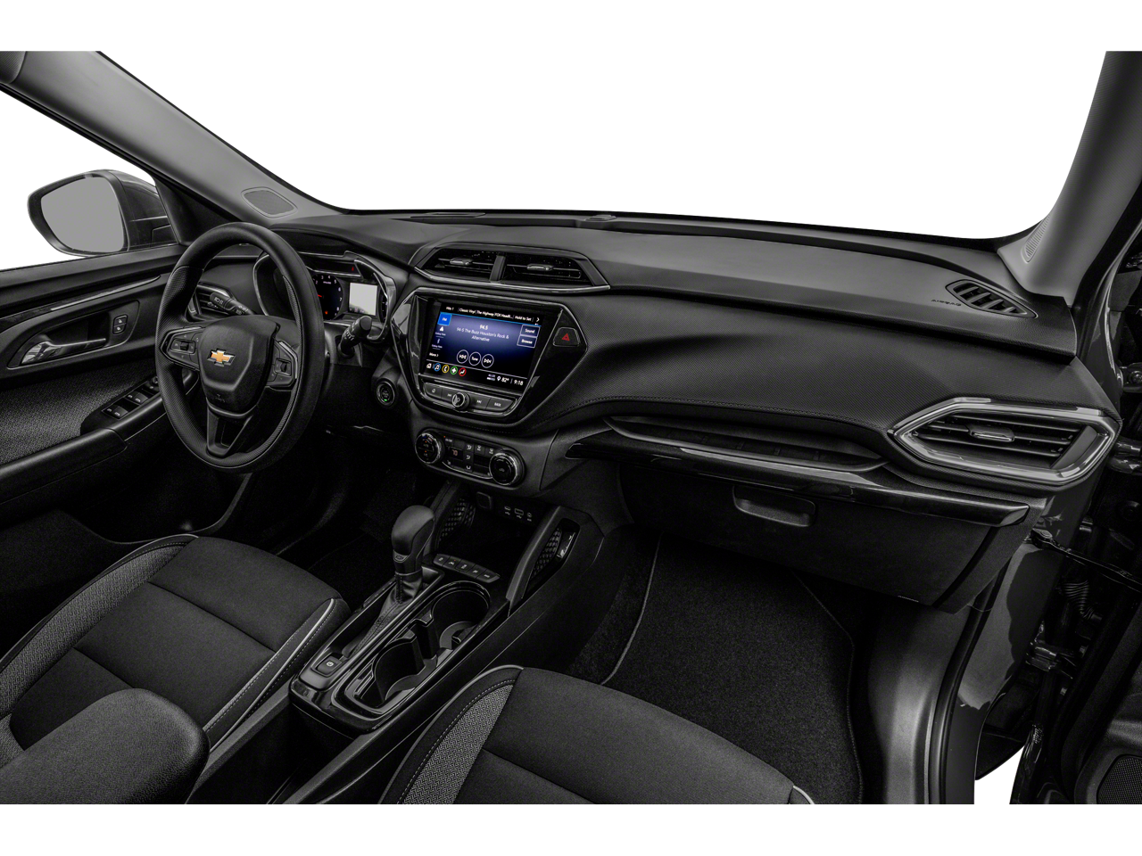 1 Type-A & 1 Type-C USB Charging-Only Ports, 120-Volt Power Outlet, 2-Way Power Driver Lumbar Seat Adjuster, 3.17 Axle Ratio, 4-Way Manual Front Passenger Seat Adjuster, 4-Wheel Disc Brakes, 6 Speakers, 6-Speaker Audio System Feature w/Amplifier, 8-Way Power Driver Seat Adjuster, 8 Diagonal Color Touchscreen Display, ABS brakes, Air Conditioning, Alloy wheels, AM/FM radio, Apple CarPlay/Android Auto, Auto High-beam Headlights, Brake assist, Bumpers: body-color, Cabin Humidity Sensor, Cloth Seat Trim, Compass, Convenience Package, Delay-off headlights, Driver & Front Passenger Illuminated Vanity Mirrors, Driver Confidence Package, Driver door bin, Driver vanity mirror, Dual front impact airbags, Dual front side impact airbags, Electronic Stability Control, Emergency communication system: OnStar and Chevrolet connected services capable, Exterior Parking Camera Rear, Flat-Folding Front Passenger Seatback, Front anti-roll bar, Front Bucket Seats, Front Center Armrest, Front fog lights, Front License Plate Bracket, Front reading lights, Front wheel independent suspension, Fully automatic headlights, Heated door mirrors, Heated Driver & Front Passenger Seats, Heated front seats, Illuminated entry, Inside Rear-View Auto-Dimming Mirror, Knee airbag, Lane Change Alert w/Side Blind Zone Alert, Low tire pressure warning, Occupant sensing airbag, Overhead airbag, Overhead console, Panic alarm, Passenger door bin, Passenger vanity mirror, Power door mirrors, Power driver seat, Power steering, Power windows, Preferred Equipment Group 1LT, Radio data system, Radio: Chevrolet Infotainment 3 System, Rear Cross Traffic Alert, Rear Park Assist, Rear side impact airbag, Rear window defroster, Rear window wiper, Remote keyless entry, Ride & Handling Suspension, Roof rack: rails only, Security system, Single-Zone Auto Climate Control Air Conditioning, SiriusXM Radio, Speed control, Split folding rear seat, Spoiler, Steering wheel mounted audio controls, Tachometer, Telescoping steering wheel, Tilt steering wheel, Traction control, Trip computer, Variably intermittent wipers, Wheels: 17 High Gloss Black Machined Aluminum, Wireless Apple CarPlay/Android Auto.