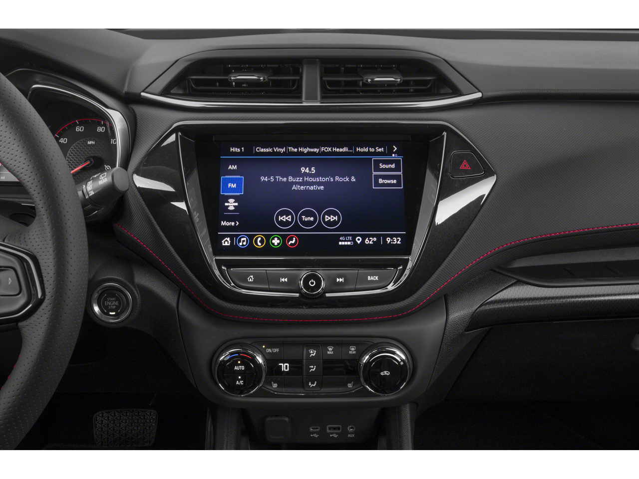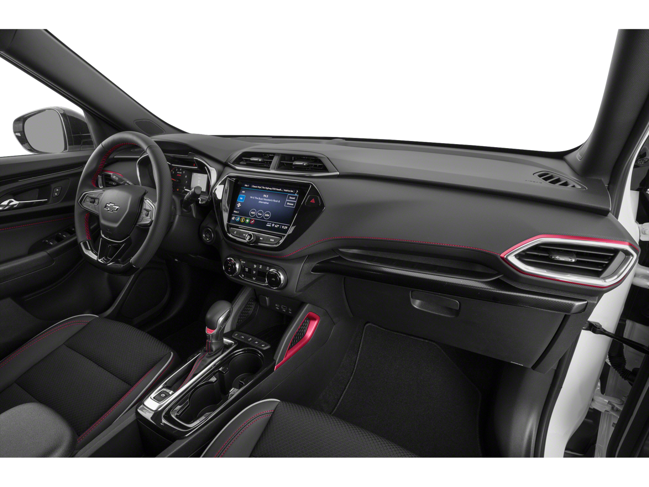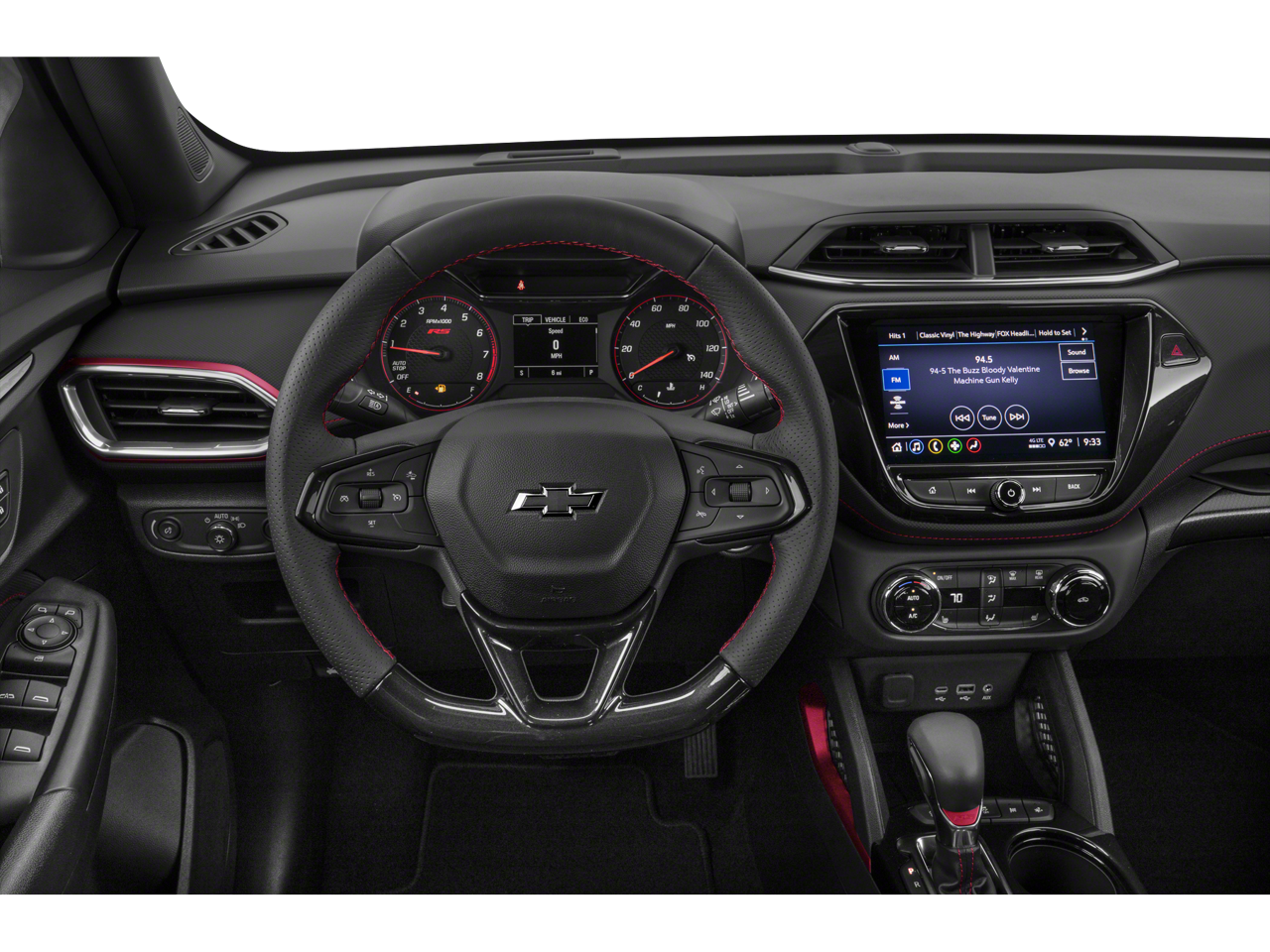 1 Type-A & 1 Type-C USB Charging-Only Ports, 120-Volt Power Outlet, 2-Way Adjustable Front Head Restraints, 2-Way Power Driver Lumbar Seat Adjuster, 4-Way Manual Front Passenger Seat Adjuster, 4-Wheel Disc Brakes, 5.45 Axle Ratio, 6 Speakers, 6-Speaker Audio System Feature, 7 Diagonal Color Touchscreen, 8-Way Power Driver Seat Adjuster, 8 Diagonal Color Touchscreen Display, ABS brakes, Air Conditioning, Alloy wheels, AM/FM radio: SiriusXM, Auto High-beam Headlights, Brake assist, Bumpers: body-color, Cabin Humidity Sensor, Cloth w/Leatherette Seat Trim, Compass, Convenience Package, Delay-off headlights, Driver & Front Passenger Illuminated Vanity Mirrors, Driver Confidence Package, Driver door bin, Driver vanity mirror, Dual front impact airbags, Dual front side impact airbags, Dual-Pane Panoramic Power Sunroof, Electronic Stability Control, Emergency communication system: OnStar and Chevrolet connected services capable, Exterior Parking Camera Rear, Flat-Folding Front Passenger Seatback, Front anti-roll bar, Front Bucket Seats, Front Center Armrest, Front fog lights, Front License Plate Bracket, Front reading lights, Front wheel independent suspension, Fully automatic headlights, Hands-Free Power Programmable Liftgate, Heated door mirrors, Heated Driver & Front Passenger Seats, Heated front seats, Heated Steering Wheel, Heated steering wheel, Illuminated entry, Inside Rear-View Auto-Dimming Mirror, Knee airbag, Lane Change Alert w/Side Blind Zone Alert, Leather Shift Knob, Leather steering wheel, Low tire pressure warning, Mosaic Black Metallic Two-Tone Roof, Not Equipped w/Heated Steering Wheel, Not Equipped w/Rear Park Assist, Occupant sensing airbag, Overhead airbag, Overhead console, Panic alarm, Passenger door bin, Passenger vanity mirror, Power door mirrors, Power driver seat, Power steering, Power windows, Preferred Equipment Group 1RS, Radio data system, Radio: Chevrolet Infotainment 3 System, Rear Cross Traffic Alert, Rear Park Assist, Rear seat center armrest, Rear side impact airbag, Rear window defroster, Rear window wiper, Remote keyless entry, Ride & Handling Suspension, Security system, Single-Zone Auto Climate Control Air Conditioning, SiriusXM Radio, Speed control, Split folding rear seat, Spoiler, Steering wheel mounted audio controls, Sun & Liftgate Package, Tachometer, Telescoping steering wheel, Tilt steering wheel, Traction control, Trip computer, Variably intermittent wipers, Wheels: 18 High Gloss Black Machined Aluminum, Wireless Apple CarPlay/Android Auto.